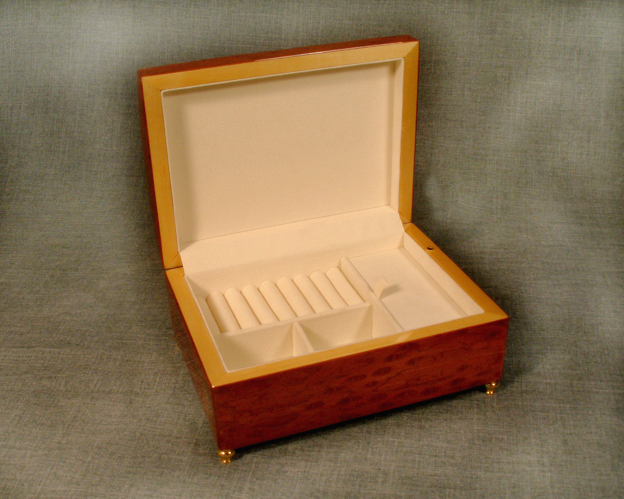 MB23C Tulip burl wood, large chest style musical jewelry box